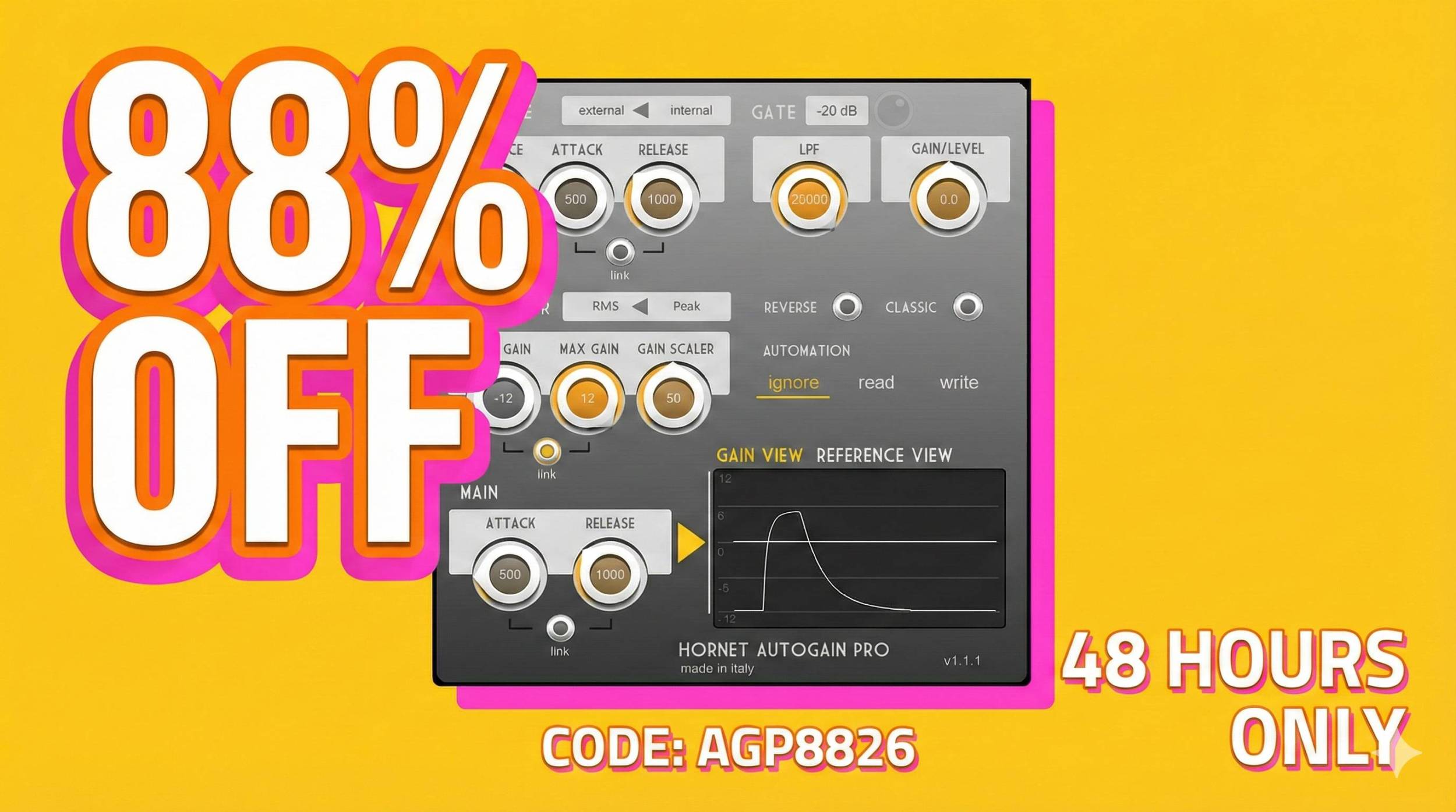 Let our plugin keep your levels constant for just a few euro with code AGP8826