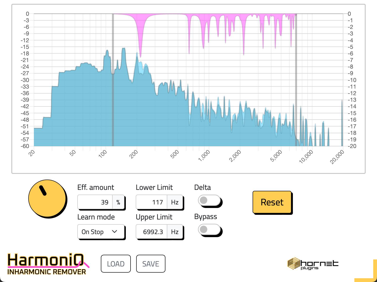 The first plugin in my equalizer chain is HoRNet HarmoniQ. This automatic equalizer is excellent for identifying and controlling inharmonic frequencies that can otherwise create harshness or interfere with the clarity of your track. HarmoniQ features specific filters designed to target these problematic areas, and I use it with a light touch—only about 30% effect intensity. This helps to reduce unwanted frequencies by up to 6 dB without over-processing the sound. The goal is to create a cleaner mix that allows the musical content to shine without any grating overtones. Using HarmoniQ at this subtle level helps maintain the musicality of the track while enhancing its overall smoothness.