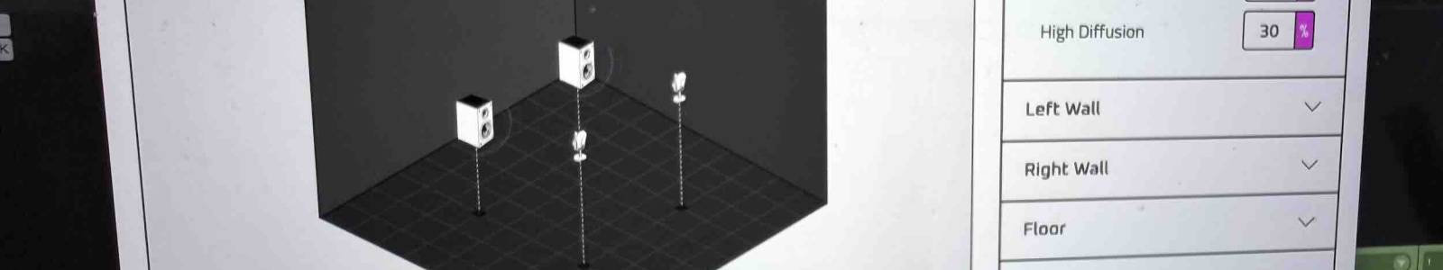 Set high-end reflection and diffusion characteristics per wall. High frequencies are absorbed by soft materials and reflected by hard ones.